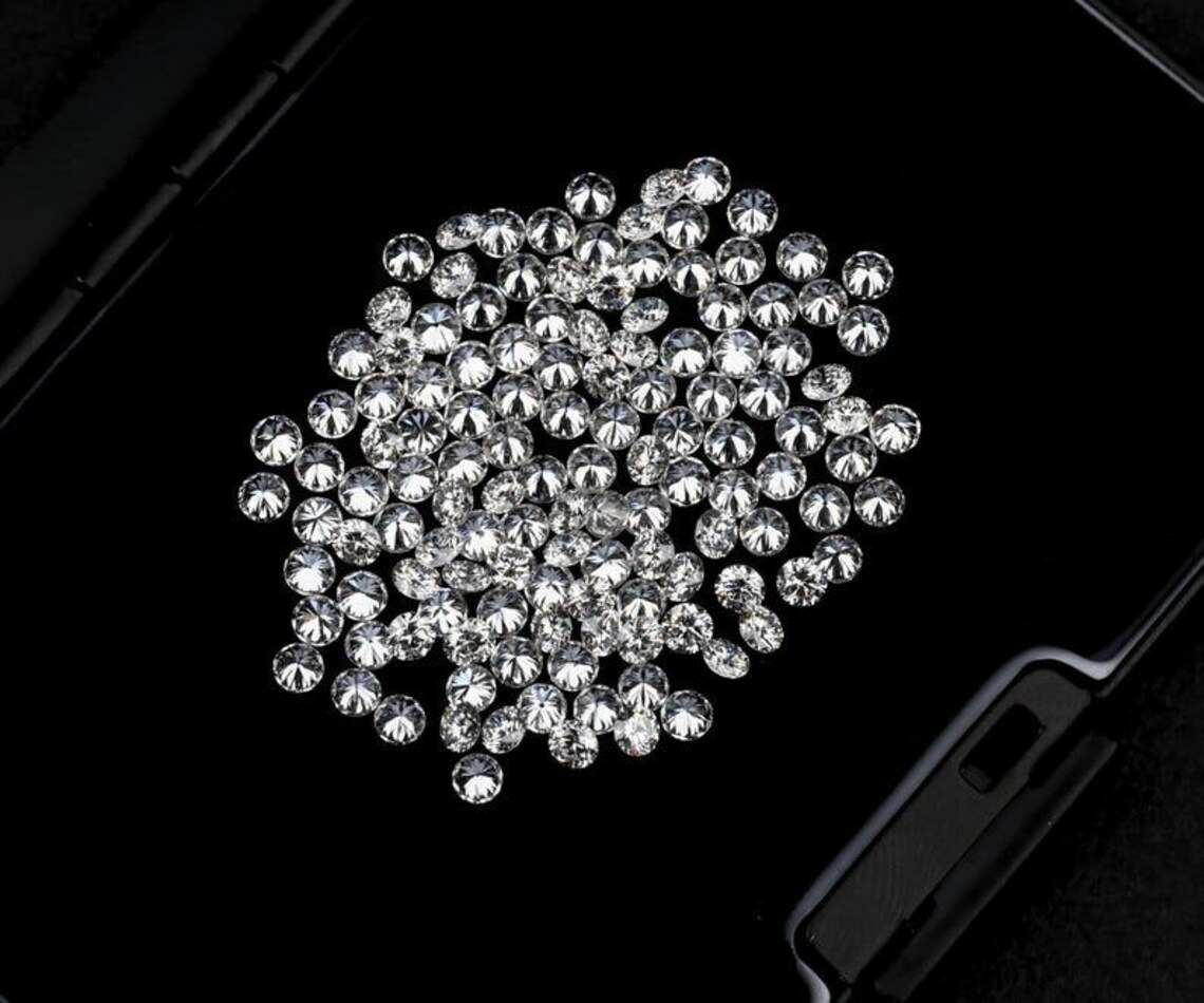 With a total weight of 9.06 carats, this lot contains 129 calibrated 2.6 MM loose diamonds graded in white color with VS–VVS clarity. The consistent sizing and high clarity make this assortment ideal for eternity bands, pavé settings, halos, and custom jewelry where precision and visual harmony are essential.