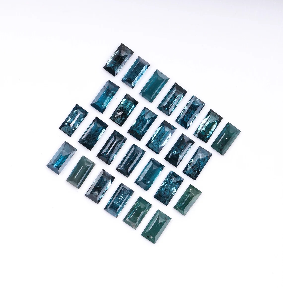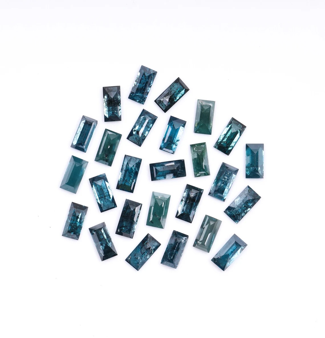 Displaying an enhanced fancy blue color with I3 clarity, these diamonds showcase distinctive character and depth. The step cut faceting produces subtle flashes of light along the length of each stone, allowing the rich blue tone to remain the focal point while maintaining a refined, modern aesthetic ideal for matched settings.