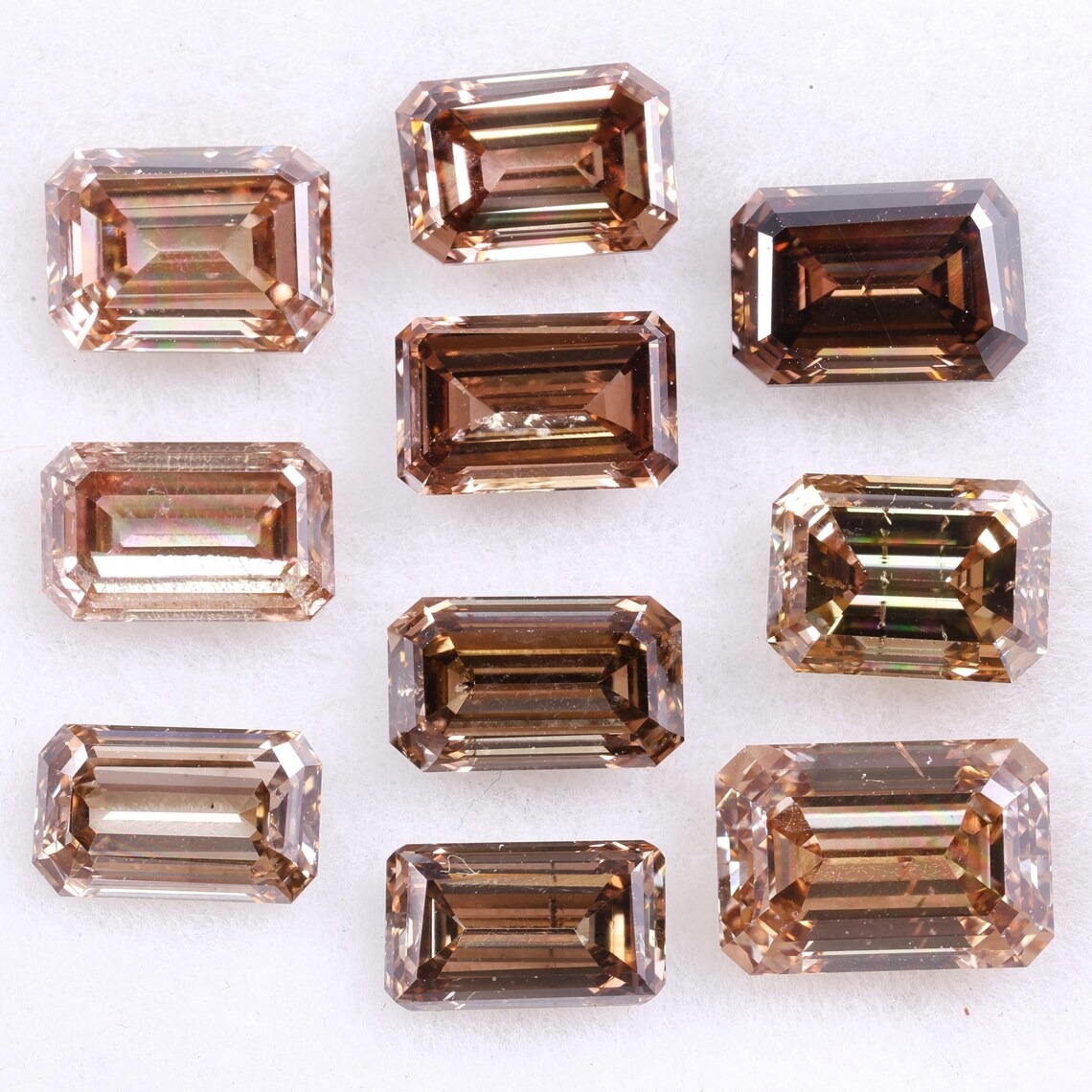 Crafted using advanced lab grown diamond technology, this brown emerald cut stone offers the same physical, chemical, and optical qualities as natural diamonds, while ensuring ethical sourcing and sustainable creation. Its linear facet pattern delivers a refined sparkle and a distinctive “hall of mirrors” effect ideal for engagement rings, custom pendants, earrings, or statement pieces that highlight artistic design.