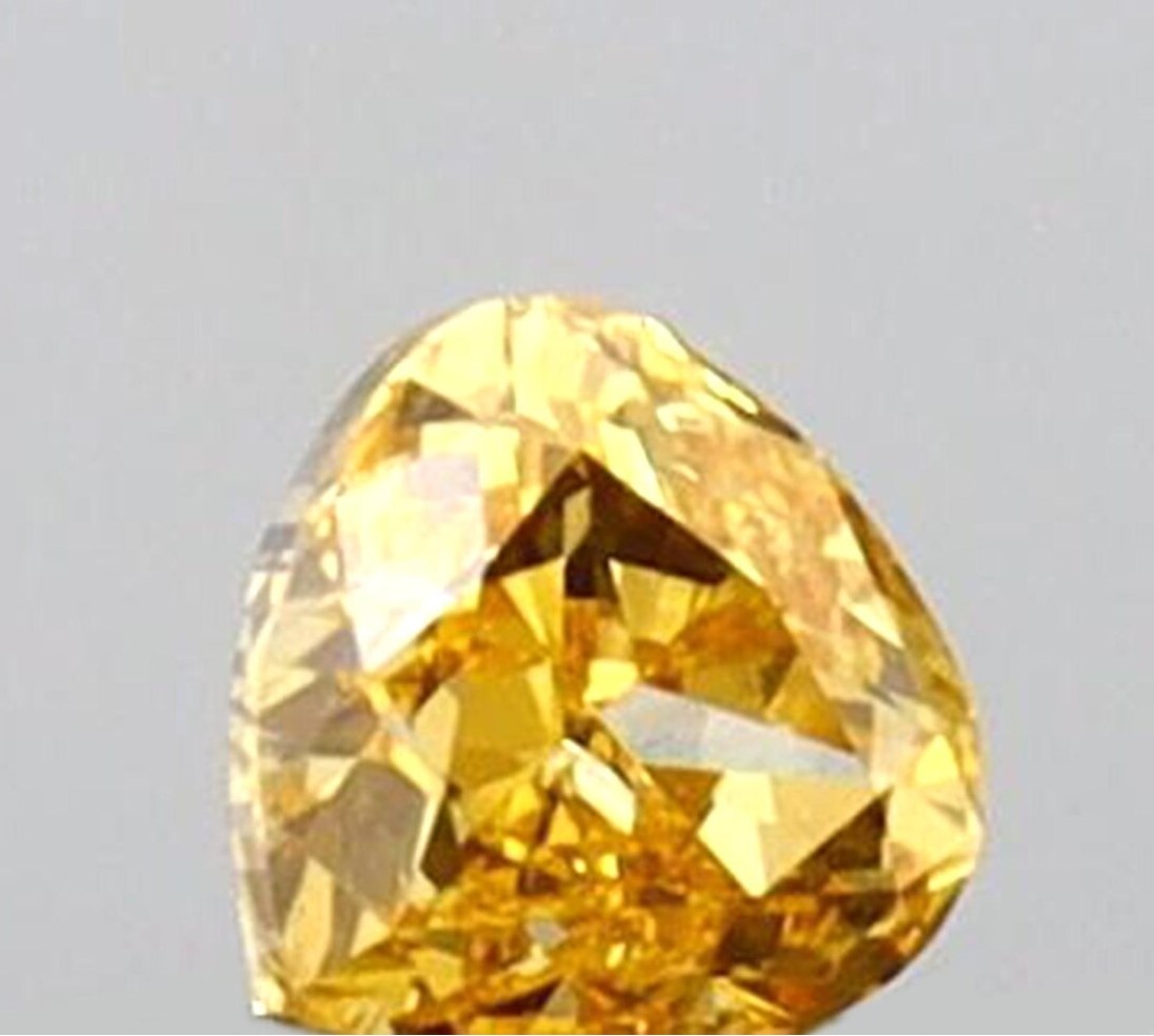 Displaying a natural orange hue with VS1 clarity, this diamond offers excellent transparency and eye clean brilliance at its size. Precision cutting enhances light interaction across the heart shape, allowing subtle sparkle to complement the stone’s warm color without overpowering its refined character.