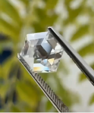 Featuring premium colorless D–F color and VVS–VS clarity, the diamond offers outstanding visual purity and refined sparkle. The step-cut faceting creates a hall-of-mirrors effect that emphasizes depth, symmetry, and polished light performance across the hexagonal shape.