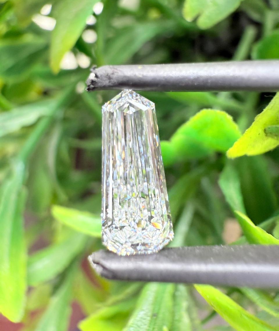 The Unique Long Tapered Emerald-Cut Lab Grown Diamond is a sophisticated gemstone celebrated for its elongated shape and refined step-cut faceting. Designed with a tapered structure, this diamond enhances length and elegance, creating a graceful silhouette that reflects modern luxury.