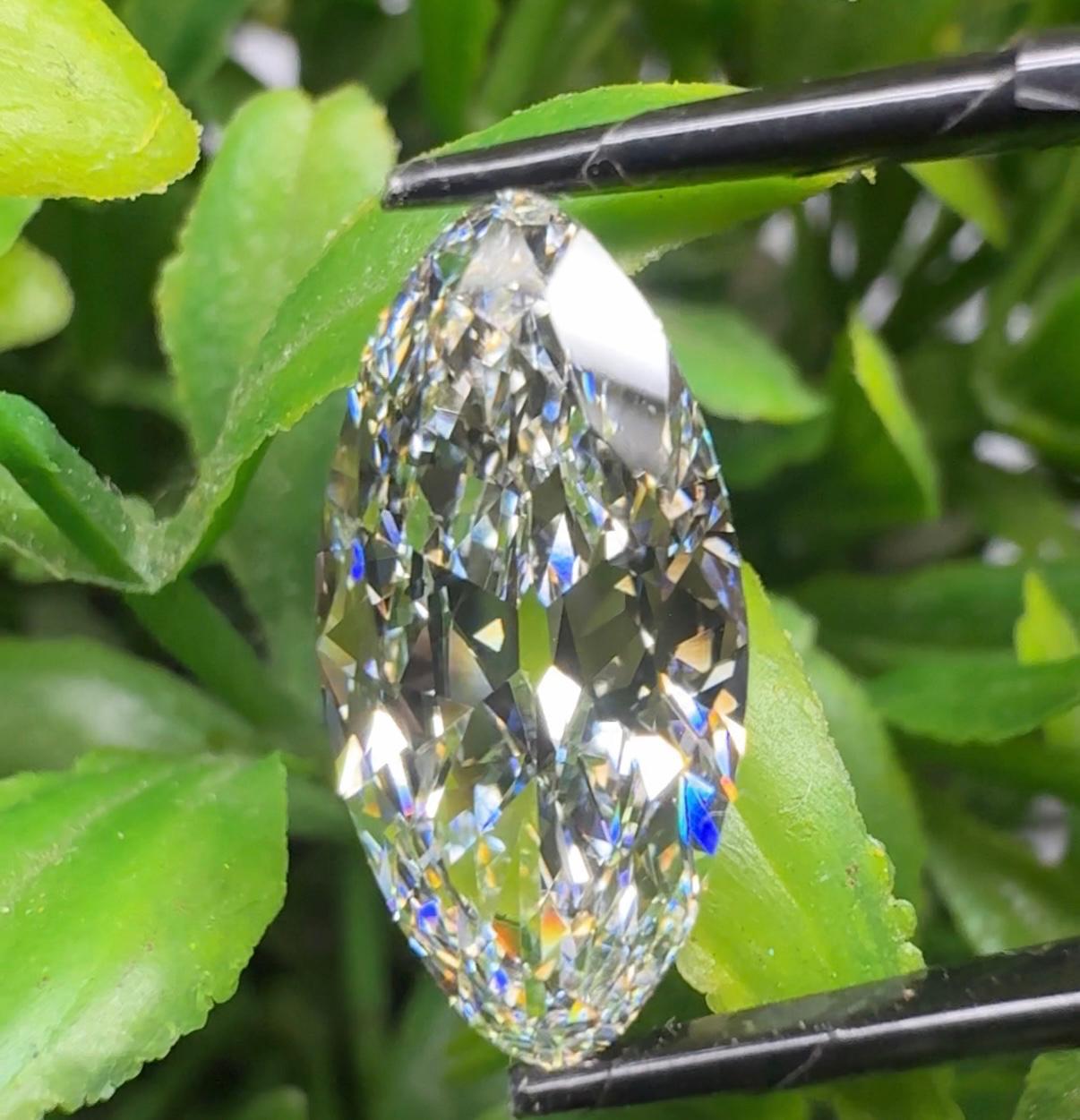 Featuring colorless D–F color and VVS–VS clarity, this diamond ensures outstanding visual purity and refined sparkle. The elongated shape creates a larger visual impression, flattering the finger or pendant while emphasizing the gemstone’s luxurious elegance.