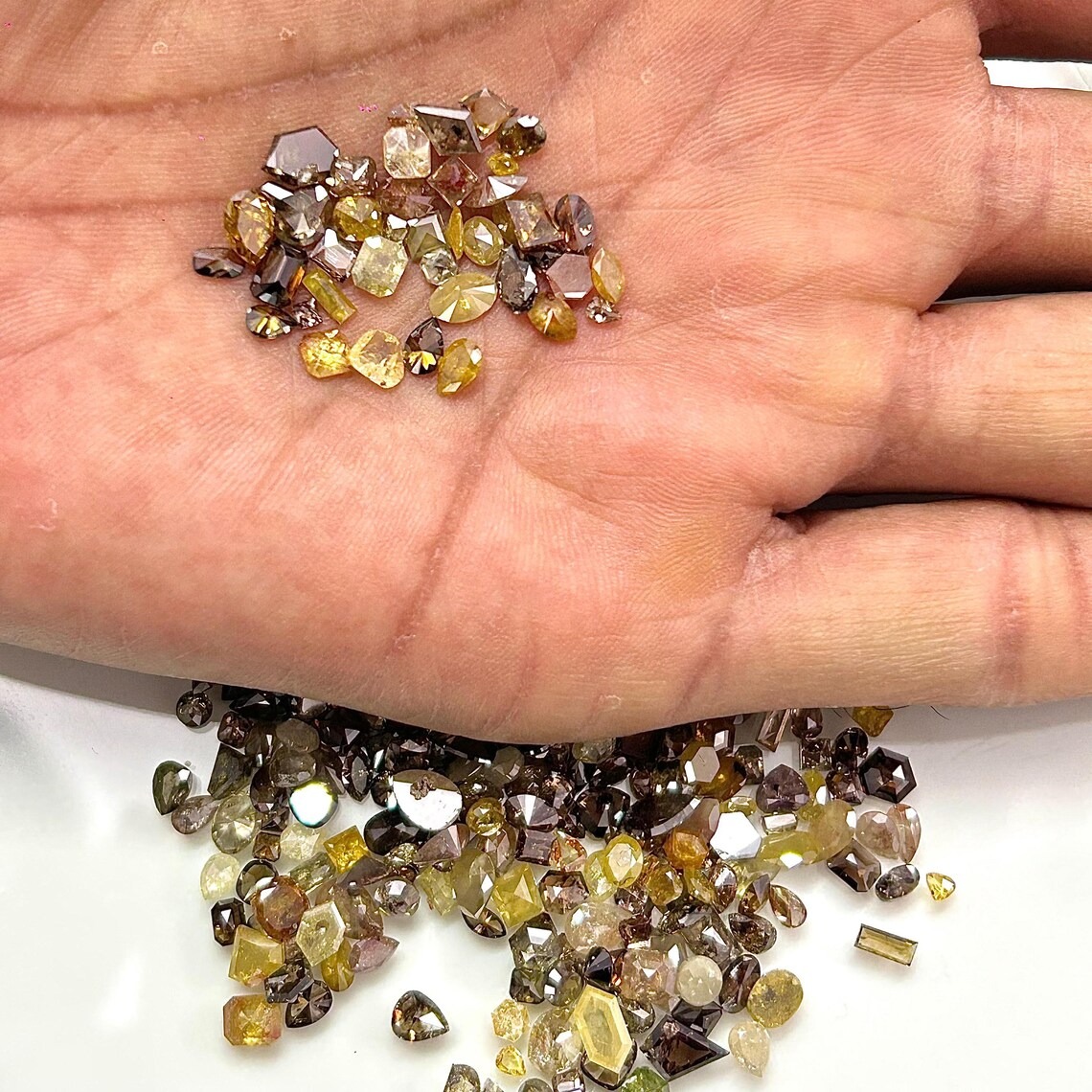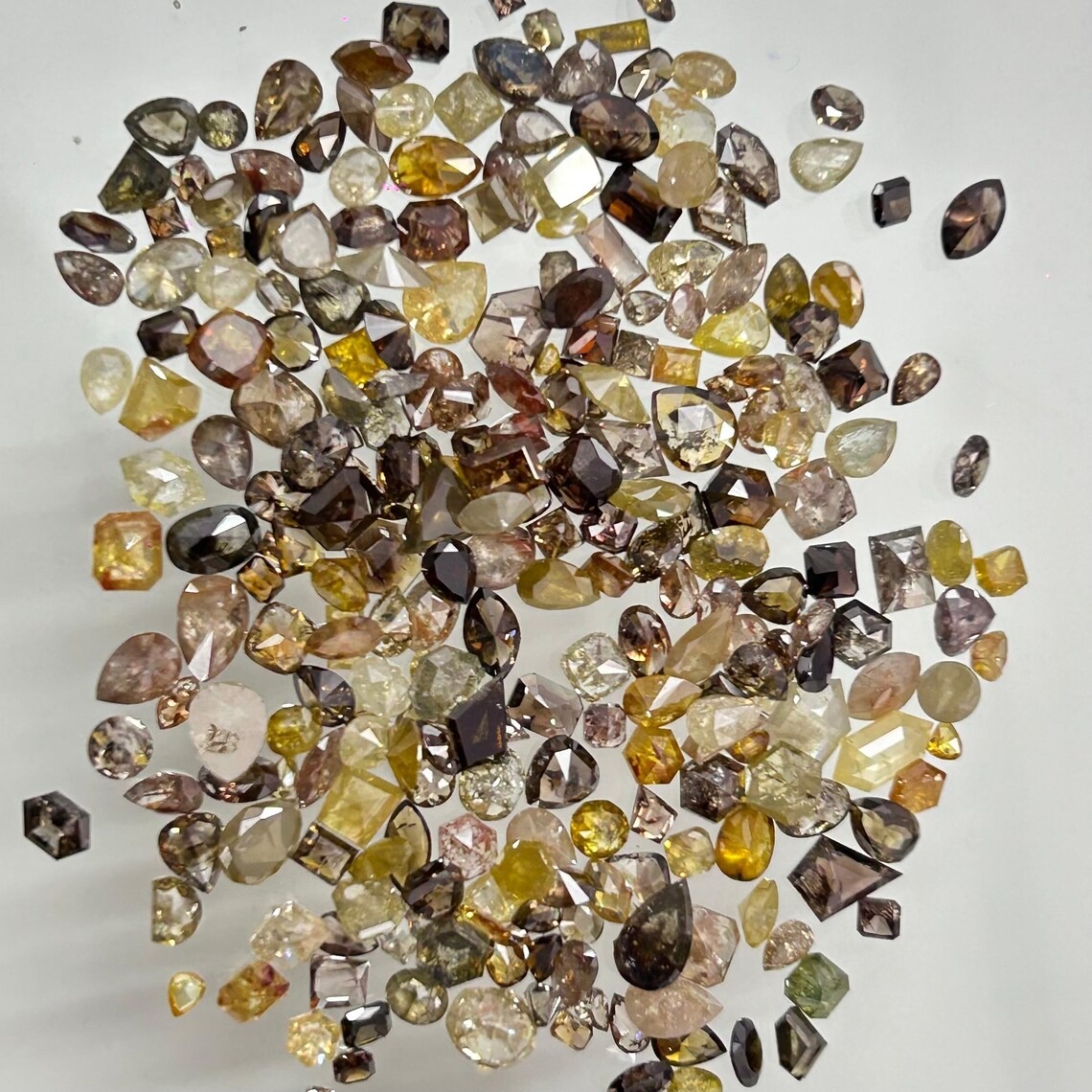 Each diamond showcases its own unique hue and character, creating a harmonious blend of colors ideal for artistic jewelry layouts. The mix shape assortment enhances versatility, making it suitable for everything from modern statement pieces to intricate multi stone designs where contrast and balance are key.
