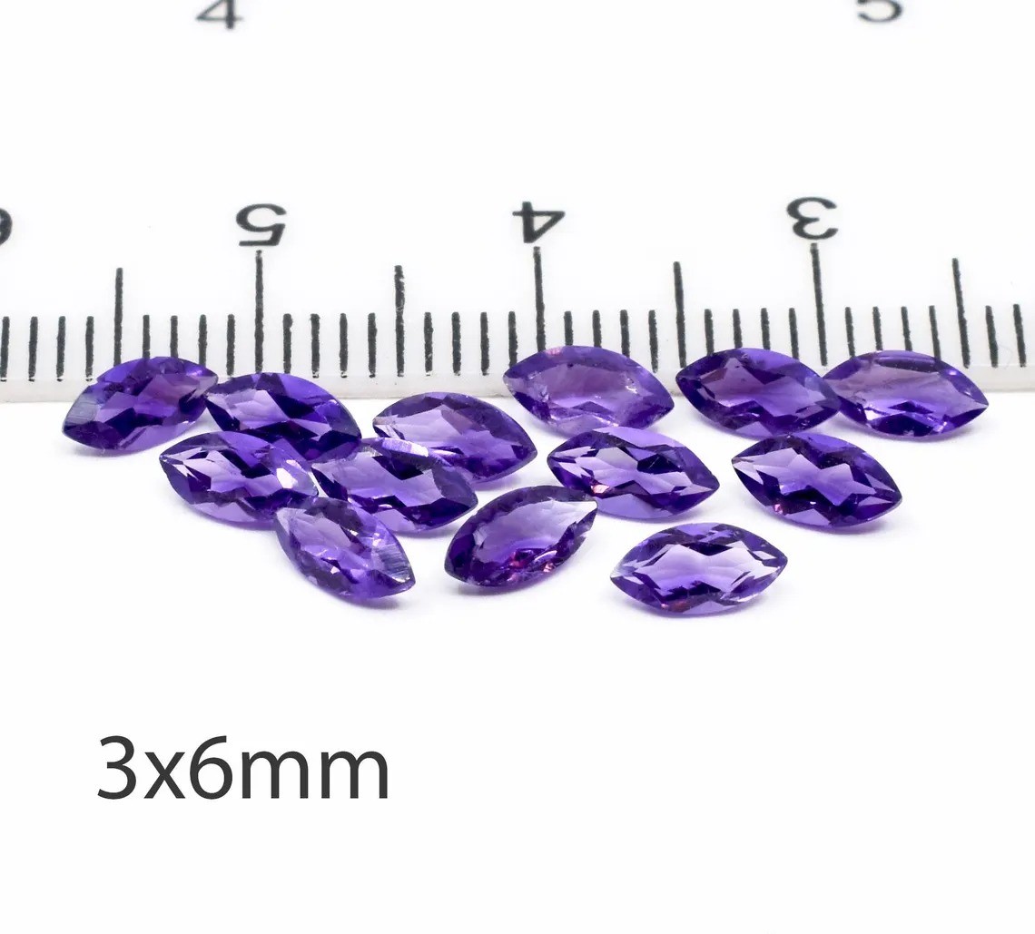 Vibrant, elegant, and versatile, this Natural Purple Amethyst showcases a beautifully faceted marquise shape that enhances the gemstone’s rich purple hue. Available in sizes from 3x6mm to 7x15mm, these loose gemstones provide exceptional brilliance and depth, making them perfect for statement rings, pendants, earrings, and custom jewelry creations.