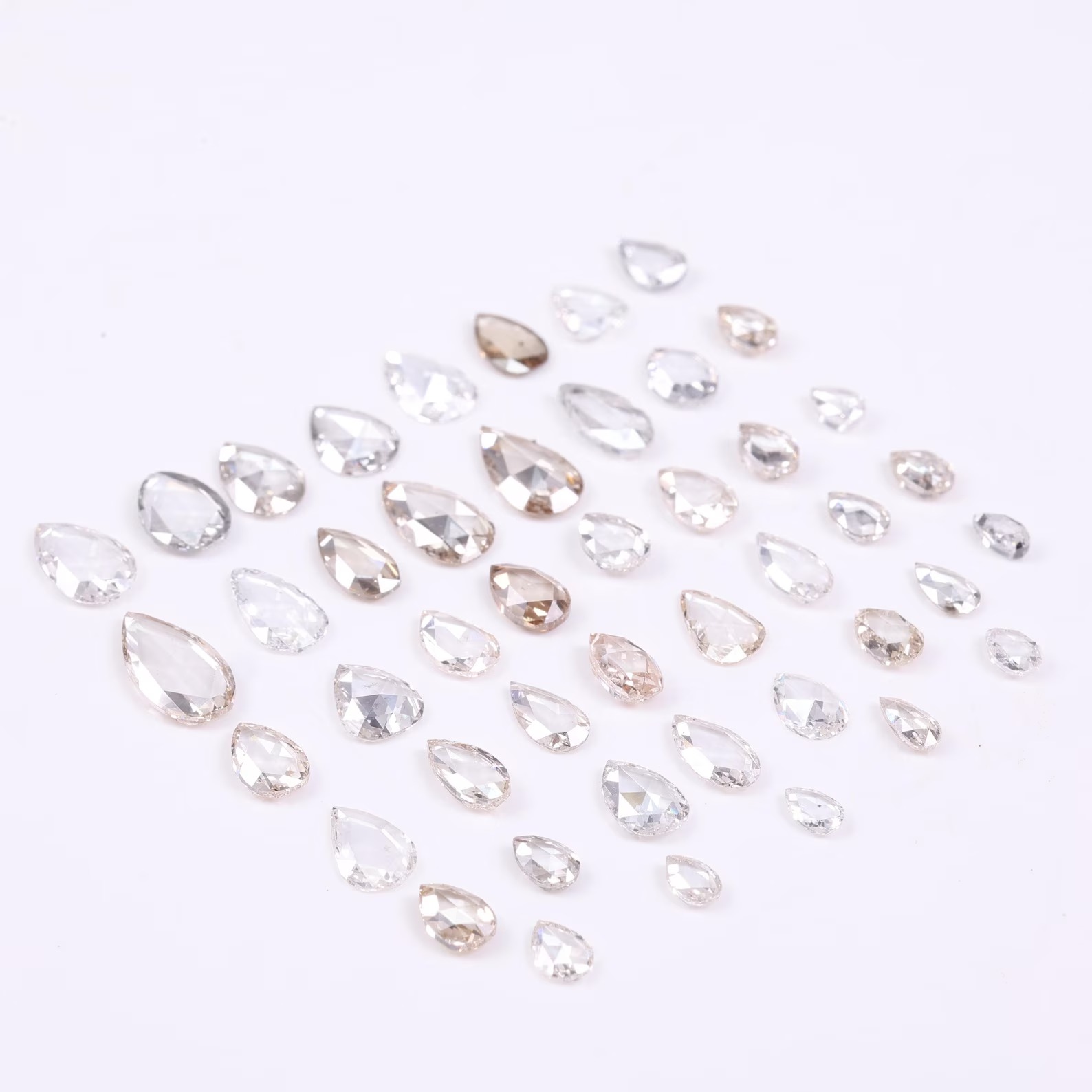 Pear Shape Lab Grown Diamond, 3 to 8 MM Pear Rose Cut Natural Diamonds, Loose Rustic Diamonds for Custom Jewelry & Gifts