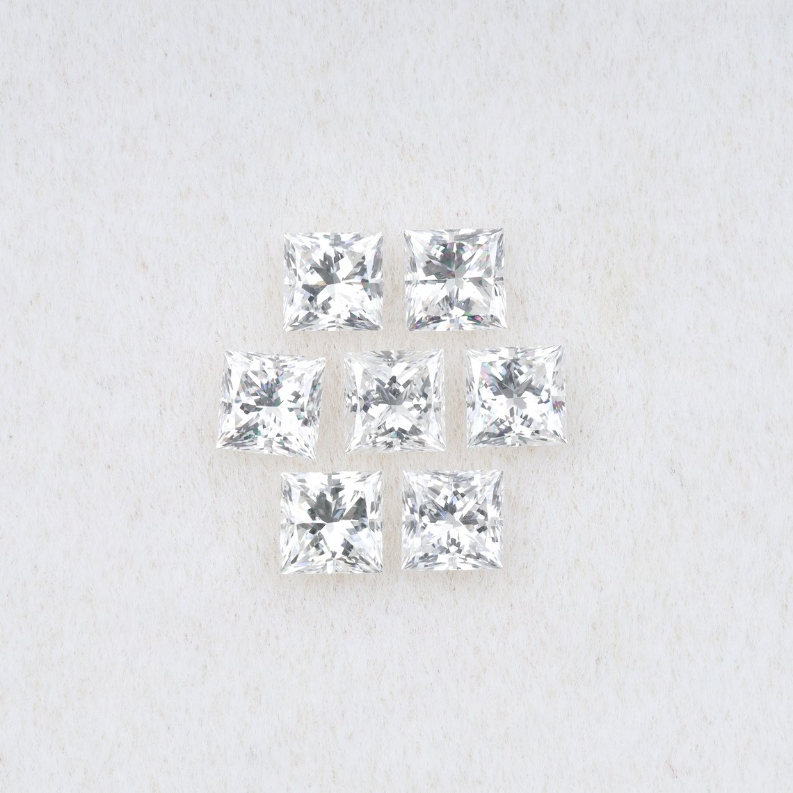 This princess cut lab grown diamond set features seven colorless square cut diamonds with crisp brilliance. Crafted in D E F color and VS1 clarity, it is ideal for refined fine jewelry and precision settings.