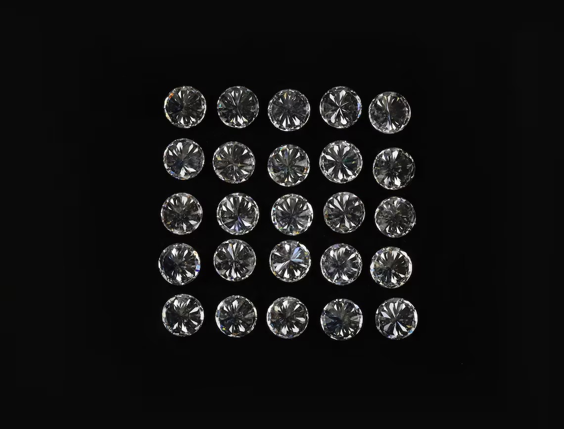25 Round Brilliant Cut Diamonds: EF VS, 1.25-2.70mm Melee Loose Diamonds