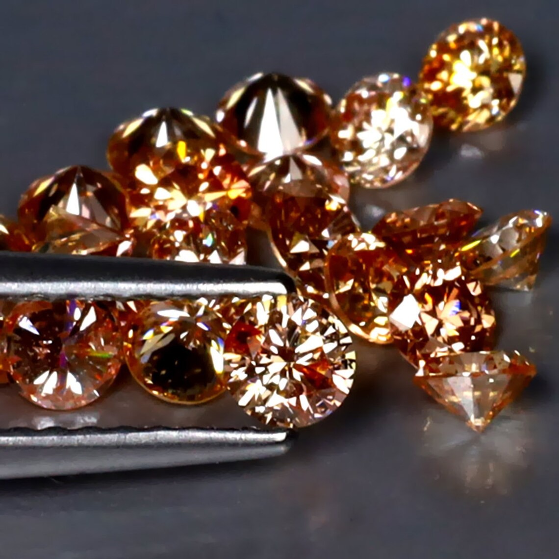 Showcasing a lively fancy orange hue with VS clarity, these diamonds offer excellent transparency and eye-clean appeal while allowing the color to remain the focal point. Precision faceting enhances light interaction, producing balanced fire and scintillation that elevates the vibrancy without overpowering delicate designs.