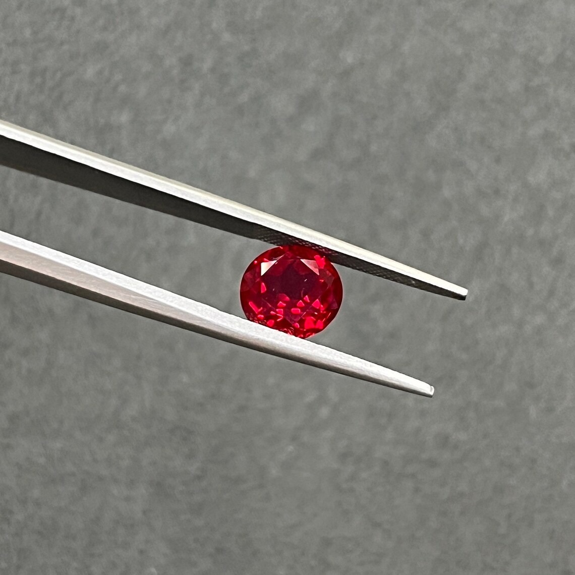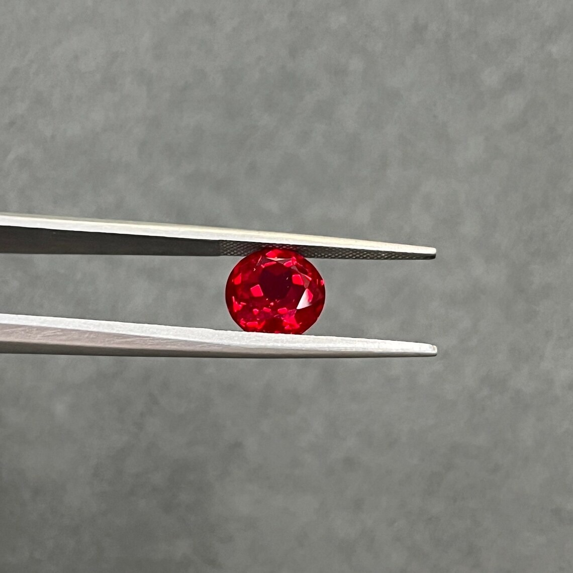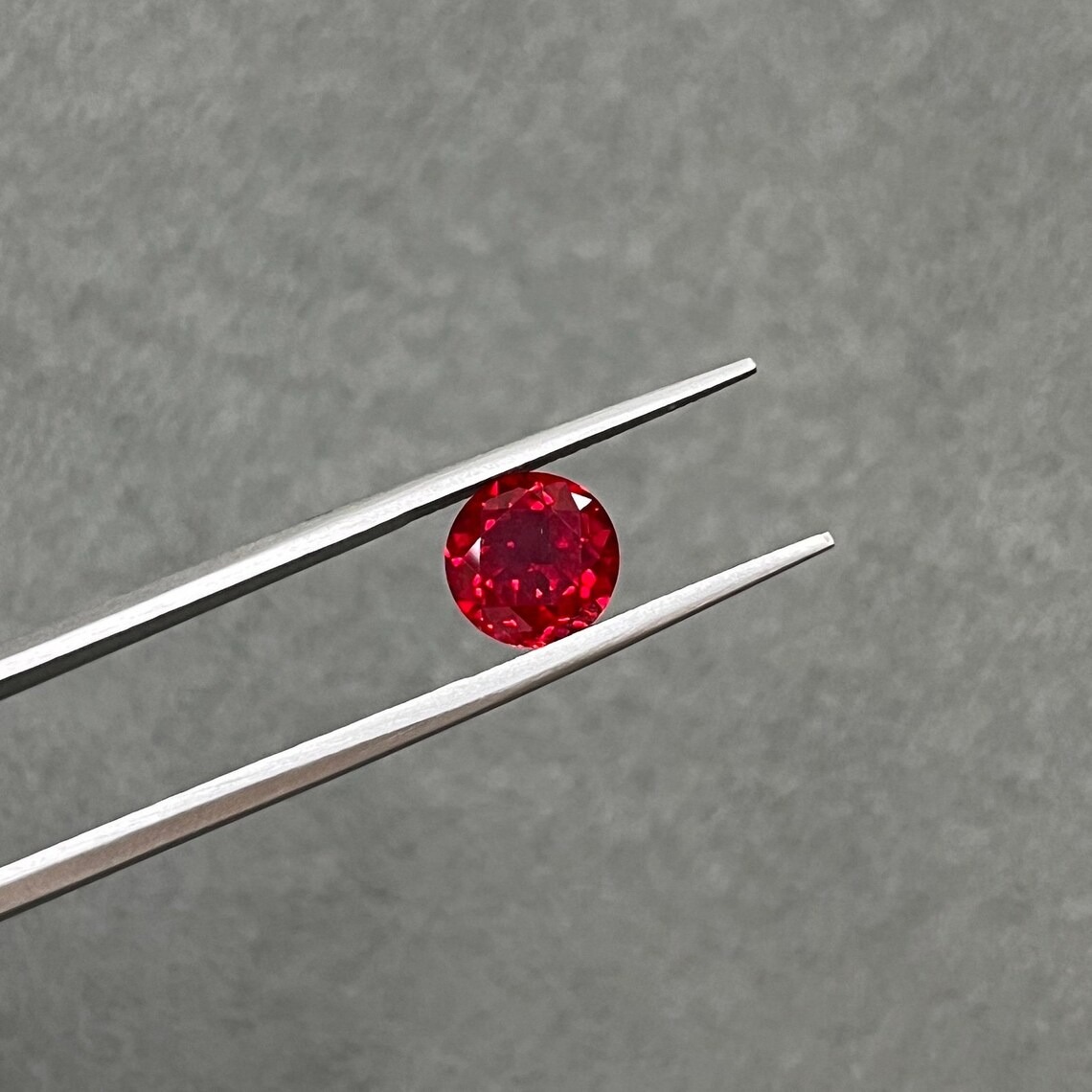 Vivid, refined, and expertly crafted, this Round Cut Lab Grown Red Ruby offers timeless gemstone elegance with modern precision. The classic round faceted shape is carefully cut to enhance symmetry and light reflection, delivering lively brilliance that highlights the ruby’s deep red color.