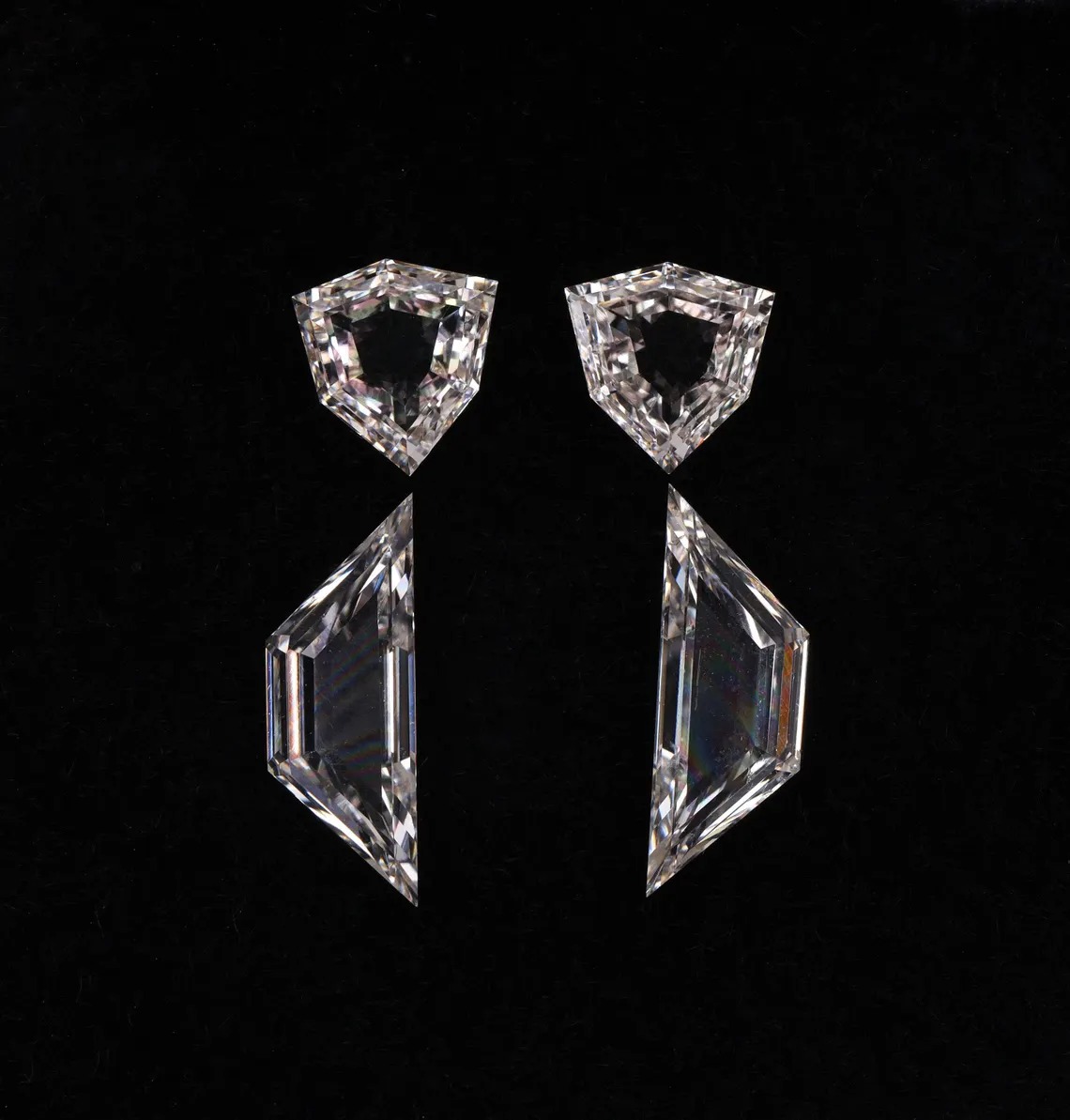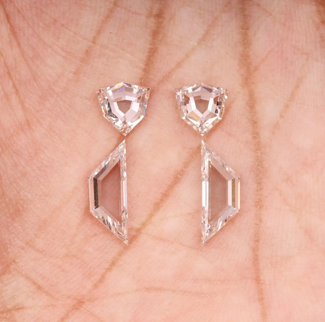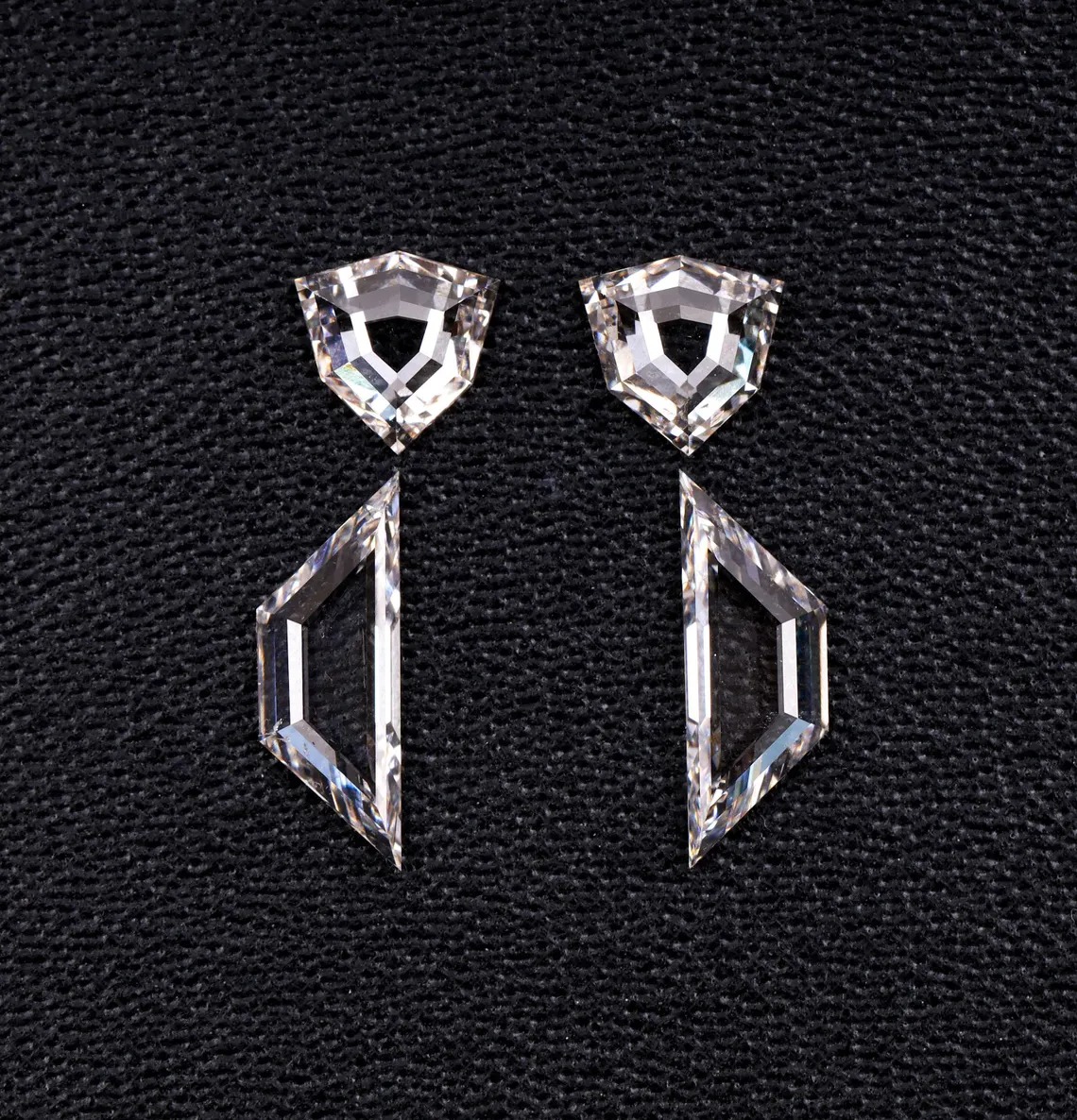 Shield Cut Lab Grown Diamond Pair – Antique Style EF VVS Diamonds